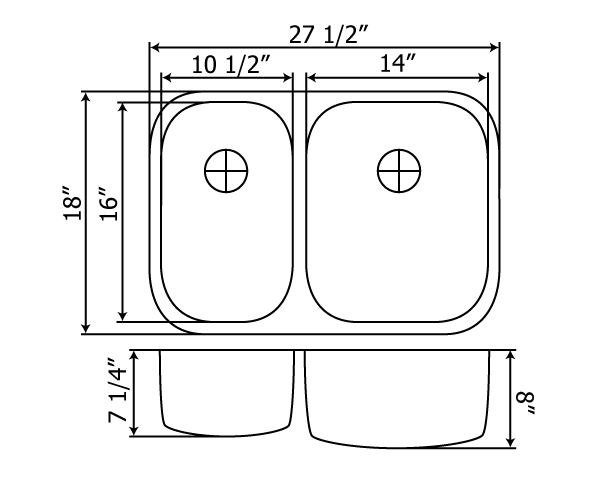 Outside dimensions: 27 1/2 x 18" x 7 1/4" x 8"